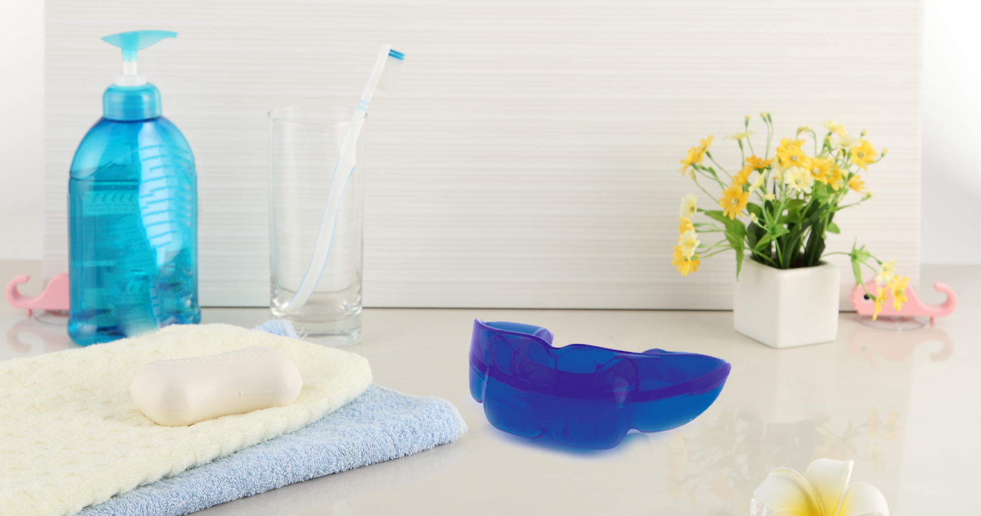 拿到矫正器后,先观察“小水滴”的位置,大多数型号的矫正器都是有“小水滴”的一端放在下颌;